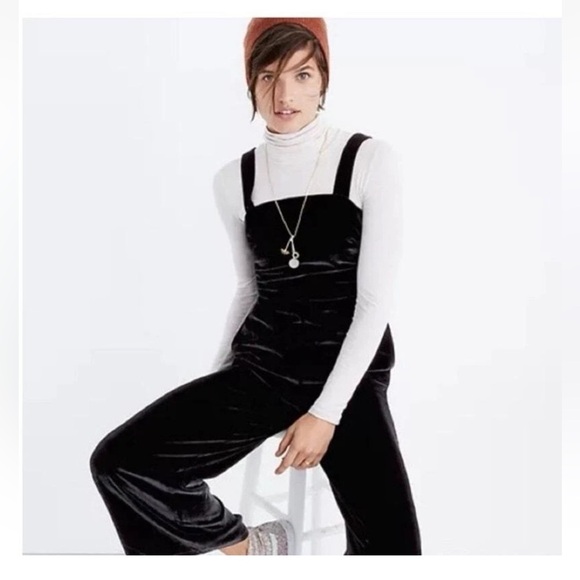 Make a statement with this stunning Madewell crushed velvet jumpsuit. Crafted from soft, luxe velvet in classic black, it features a flattering wide-leg cut and cropped length, perfect for pairing with boots or heels for an elevated look.