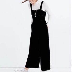 Madewell Crushed Velvet Wide Leg Cropped Jumpsuit – Black – Size 12