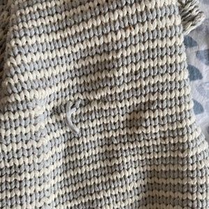 58% cotton and 42% Nylon some threads have come lose but still in excellent condition. Looks adorable layers with a dress or jeans and a top. Comes from a smoke free and pet free home. As always, willing to negotiate