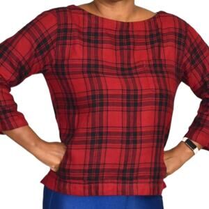 Madewell Curtis Plaid Shirt Red Flannel Tee Pullover Black Herald Top Size Small