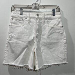 Madewell Curvy High Rise Denim Shorts White Frayed Hem Women Size 27