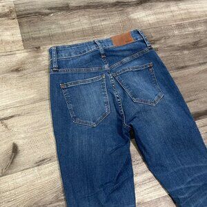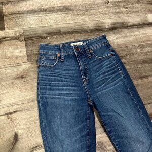 Women’s casual cropped skinny jeans from Madewell! Light stretch material great for any outfit. High rise waist, distressed leg, minor wear between legs, great used condition!