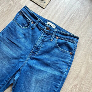 Madewell Curvy High Rise Skinny Crop Jeans. in good condition with some very light wear on the inner thighs and a light stain on the one leg