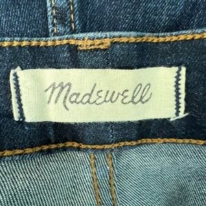 Madewell women's curvy skinny blue jeans. Metal button & zipper closure. 5-pocket. Belt loops. Whiskered. Dark wash. In good used condition. No stains, tears or holes.