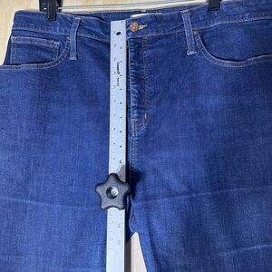 The product is a pair of Madewell curvy high rise skinny jeans in a size 35T. These jeans are designed for tall women and feature a flattering skinny style in a classic blue color. Made by the popular brand Madewell, these jeans offer a comfortable and stylish fit for women looking for a versatile wardrobe staple.