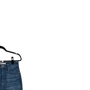 Madewell Moreaux Wash Curvy High Waisted Flat Front Contrast Topstitching Zip Logo Button Closure Slight Distressing on Pocket Edges Magic Pocket Design Skinny Jeans Ankle Stretch Denim Size 27 - Excellent condition.