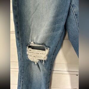 Trendy Madewell straight leg jeans with distressed details. Classic blue denim for a casual look.