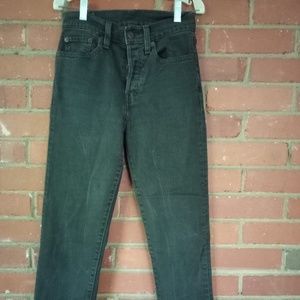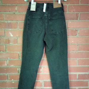 10 1/4" high rise, fitted through the hip and thigh, 13 1/4" tapered leg opening, 26 1/2" inseam.
