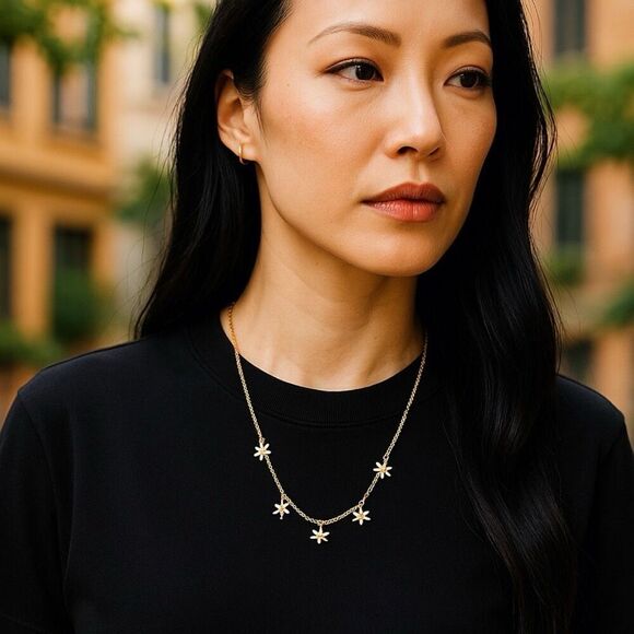 • Enamel Daisy Charm: Tiny white enamel flower highlights the classic choker silhouette