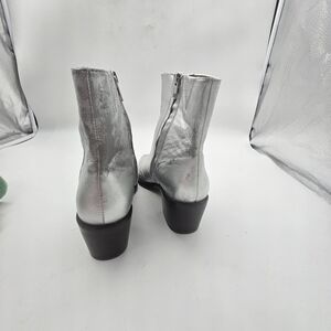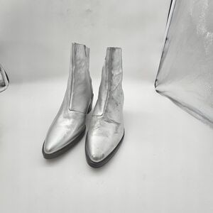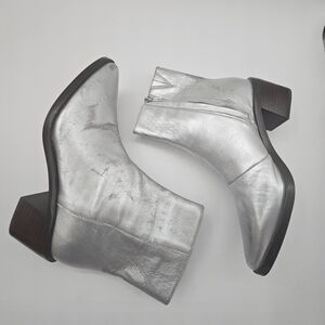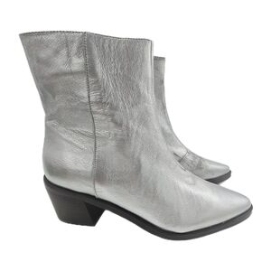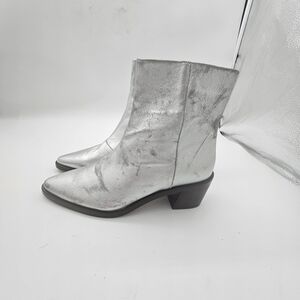 Madewell Darcy Ankle Boot Silver Metallic Stacked Heel Zip-Up Size 9