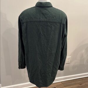 Stylish dark green button-down shirt. Features two chest pockets and two extra seam pockets on the sides, idk what to call those— lol. Perfect for casual wear. Some light wash wear.