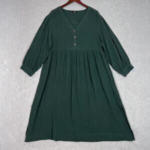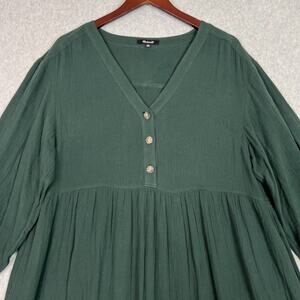 Madewell Dark Palm Lightspun Button Front Long Sleeve Midi Dress Size 14