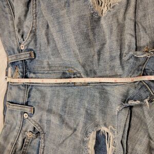 Jean denim Patched Distressed frayed hem shorts High Waist Destroyed Ripped Vintage Cut Off Diagonal Grunge Rock N Roll