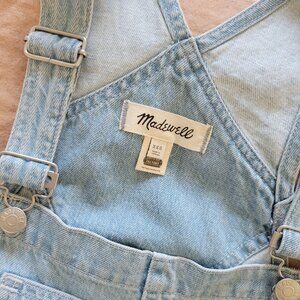 Carpenter shortalls / short overalls in light blue Chapin wash from Madewell.