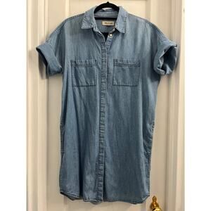Madewell Denim Chambray Cotton Collared Shirtdress, Blue size M