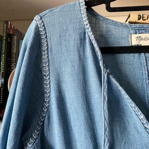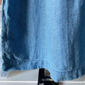 Made of breezy linen and cotton, this indigo-dyed peasant style dress is embroidered with old-school arrowhead stitches along the seams (we got the idea from a handmade shirt circa 1973). Slip on some sneaks for an instant outfit.