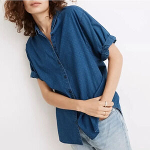 Madewell Denim Chronicle Button-Down Short Sleeve Shirt Oversized Boxy Textured
