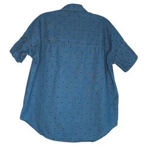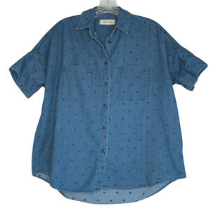 Madewell Denim Courier button front, slightly boxy, oversized shirt in metallic dots, women's XS. Good used condition, see photos.