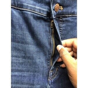 Madewell Denim Jeans Size 35T 10"High Rise Skinny Dark Distressed preowned small thread imperfection pointed out at the bottom