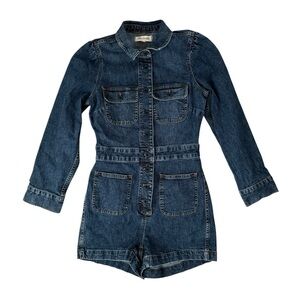 Madewell Denim Long-Sleeve Romper in Vasey Wash Blue Jeans Button Size 0 Shorts