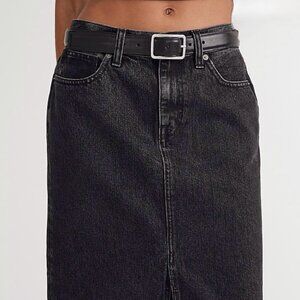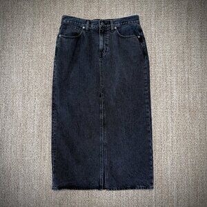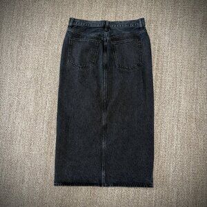 Like new! This Madewell skirt has only been worn a couple of times. No flaws. Classic 100% cotton denim with zero stretch. Slightly nipped in at waist, walkable slit in front is sexy but not too revealing. Sits just below waist for TTS fit, otherwise, this fits more like size 28 if worn at natural waist. Slightly distressed black wash. Flat measurements: Waist = 16", Hips = 19.5", Length = 34", Slit = 19". Machine wash cold.