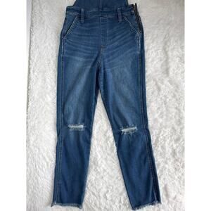 Madewell Denim Overalls Medium Wash Distressed Knees size ziper Medium
