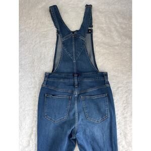 Madewell denim overalls in a versatile medium wash. Classic bib-front style with adjustable straps, belt loops, and side zip closure. Features straight-leg fit with light distressing at the knees and raw-cut hems for a laid-back, worn-in look. Made in Chile, size Medium — works well for casual layering with tees, sweaters, or tanks. High-quality Madewell denim known for comfort and durability. Perfect for everyday wear, festivals, or styling with boots and sneakers.