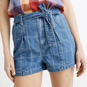 Madewell Denim Paperbag Shorts Windowpane Check Size 29 High Rise Preppy NWOT