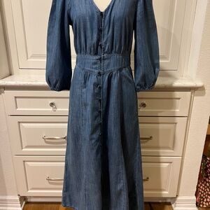 Madewell Denim Pieced Waist Midi Dress Mariden Wash Button Front (size 0)