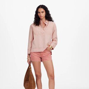 Madewell Denim Popover Shirt in Garment Dye in Pale Blush, Size X-Large
