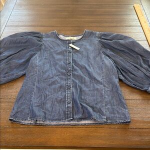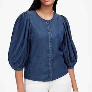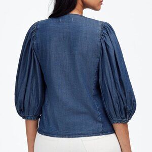 Madewell Denim Puff-Sleeve Button-Up Top Size 2