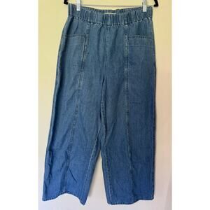 Madewell Denim Pull-On High-Rise Wide-Leg Crop Pants, size M, elastic waist band