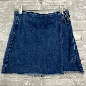 Madewell Denim Raw-Hem Mini Wrap Skirt