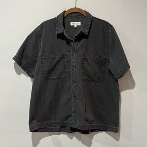 Madewell Denim Short-Sleeve Button-Up Shirt Women’s Large Gray Lunar Wash Boxy