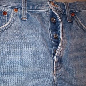 Features: 4 Metal Button Fly Closure, 5 Pockets, 5 Belt Loops, Distressed Design, and Rolled Hem.