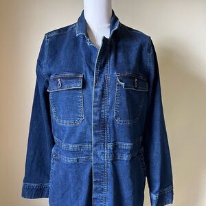 Madewell Denim Slim Coverall Jumpsuit Dark Blue Button Down Cotton Stretch 10