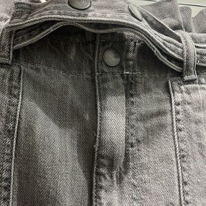 With a high-rise paperbag waist, these superflattering grey denim shorts have a vintage-y workwear vibe thanks to utility pockets and cool snap belt. Made to wear with a tucked-in tank or tee.