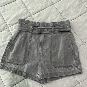 Madewell Denim Snap-Belt Paperbag Shorts in Pale Grey Sz 28