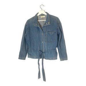 A fresh take on our favorite army-navy look, this military jacket can be cinched at the waist for a feminine fit (or knot the drawstrings for a cool, undone vibe). Lightweight and drapey, it's the perfect is-it-spring-yet style. 100% cotton.