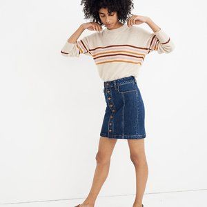 Straight and stretchy, this denim pencil skirt has classic seaming details and old-school buttons.