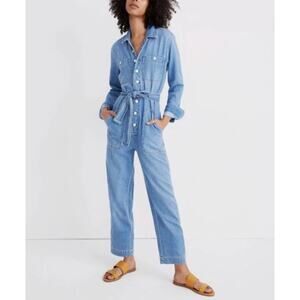 Madewell Denim Tie Waist Jumpsuit Womens Medium Blue Coverall Preppy Hipster