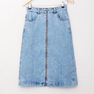 Madewell Denim Zip Midi Skirt in Janice Wash Size 26 Stretch Jean Full Zip $88