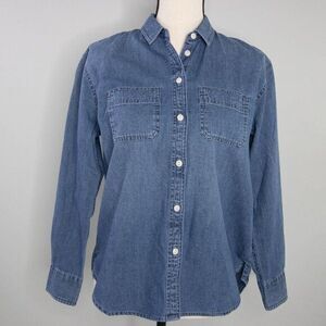 An oversized take on our signature tomboy denim button-up in a classic blue wash. Ex-boyfriend shirt, next-boyfriend attitude.