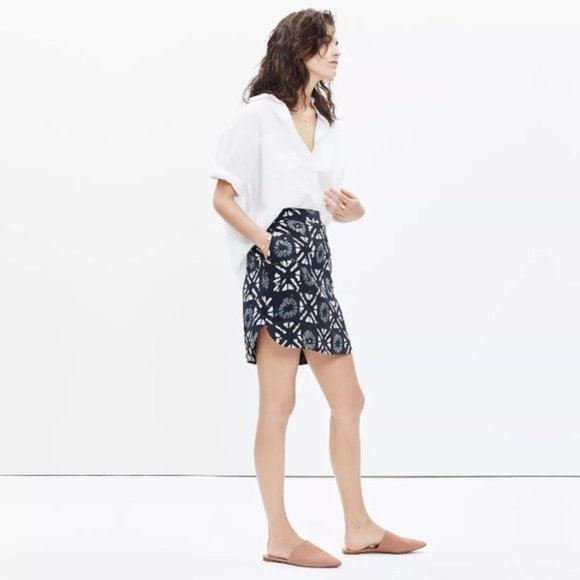 A pull-on mini with a sleek curved hem. Made of so-soft brushed silk in a fresh take on a timeless batik print.