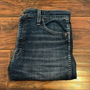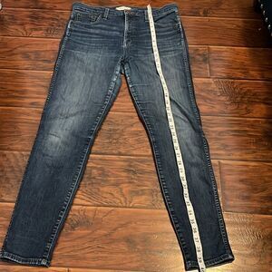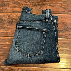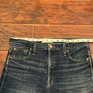 Madewell Distressed 10” High Rise Skinny Blue Denim Jeans, size 31, factory distressing. Please note; has areas of wear-view photos.