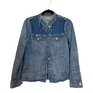 Madewell Distressed Collarless Denim Jackets Thunder Cloud Blue Women's Size M