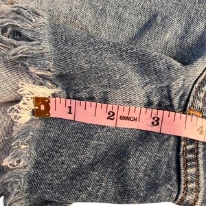 These Madewell blue jean shorts boast a trendy distressed look with frayed hems and exposed button fly, perfect for a relaxed summer style. The cut-off design in varying blue shades adds a vintage touch, ideal for casual outings. Lightly worn with no flaws. Pet and smoke free home.