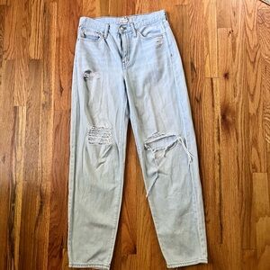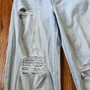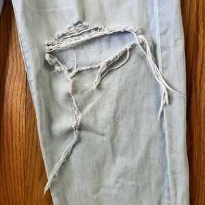 Relaxed fit with stylish rips. Light wash denim for a laid-back look.