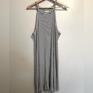 Stylish striped dress. Sleeveless design. Perfect for casual outings.
