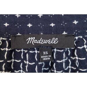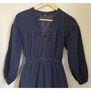 Madewell Dobby V Neck Tiered Dress Navy White Extra Small XS